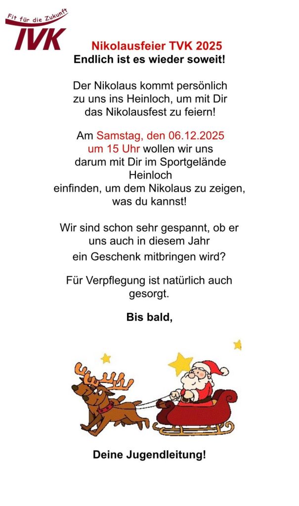 Herzliche Einladung zu unserer Nikolausfeier im Heinloch.